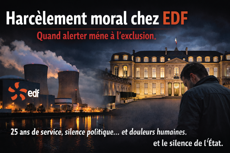 L’État, ainsi que les différents Premiers ministres successifs, n’ont rien fait pour faire cesser la situation que je dénonce, alors même qu’ils disposaient de plusieurs leviers juridiques et institutionnels pour agir : un simple appel téléphonique, une intervention administrative, ou encore la mise en œuvre de l’article 40 du Code de procédure pénale. Rien n’a été engagé pour protéger EDF, son harcèlement devenu institutionnel et ses harceleurs.