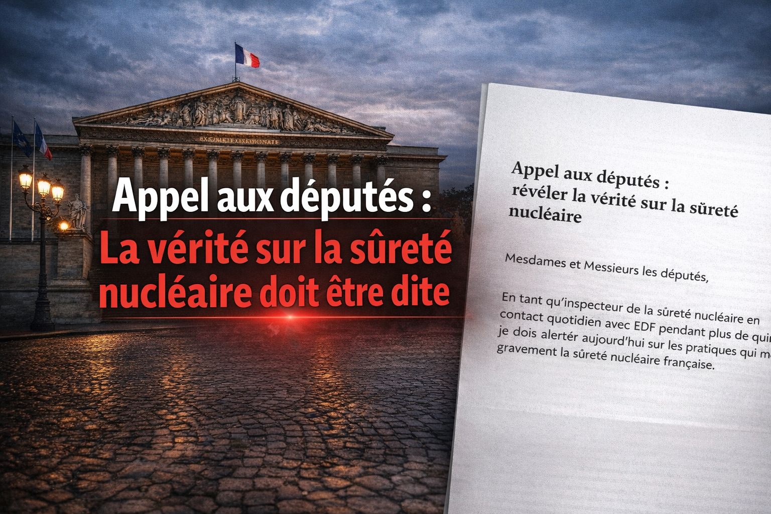 Aujourd’hui, je dois également vous avouer que les rapports internes au sein d’EDF relatifs à la sûreté nucléaire sont édulcorés et retravaillés afin de protéger les directeurs de centrales et de ne pas exposer la réalité des faits en matière de sûreté. Cela aussi, je suis en mesure de le prouver.